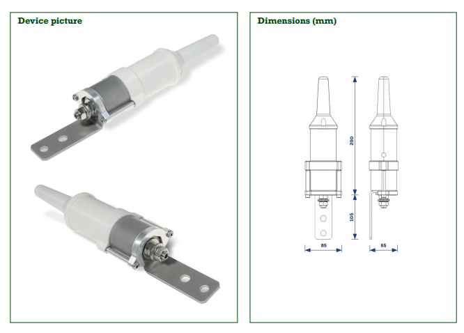 The short-circuiting device inside the new RWVL1 family is of special design that reacts very quickly to the current flowing through the discharge tube and, at the moment of its overload or destruction threat, shunts it out and ensures a permanent shortcircuit with minimal energy loss so that there is no physical damage to the product housing that could be dangerous to the environment. This short-circuiting device is wirelessly connected to detection electronics that registers such a change and is capable of permanently indicating it. The electronics consists of a patented overload sensor and wireless transmitter. Status change of sensor is regularly transmitted through long range wireless access network to an evaluation server which provides the operator with information about the status of VLDs across the entire railway network. This information allows the operator to react immediately (replace the VLD) and minimize leakage, corrosive currents through the activated VLDs.