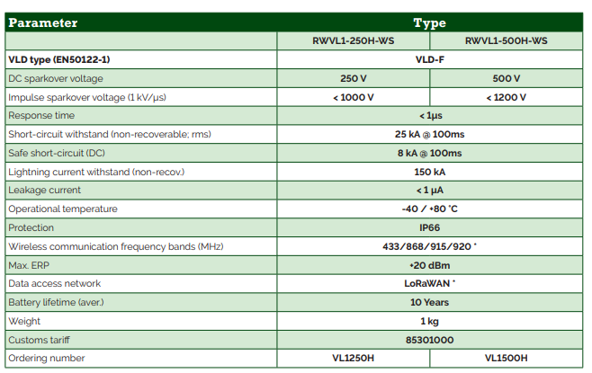 | Parameter | RWVL1-250H-WS | RWVL1-500H-WS |